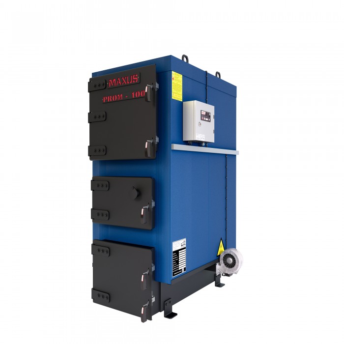 Промисловий твердопаливний котел Maxus PROM 98 – це один з найменших котлів промислової серії "PROM". Даний котел розрахований на опалювальну площу до 980 квадратних метрів. Котел оснащений великою камерою спалювання палива та вторинною подачею повітря. Коефіцієнт корисної дії такого опалювального приладу складає до 88%, а це в свою чергу дає економію на паливо в порівнянні з іншими опалювальними пристроями цього типу. Водогрійний промисловий котел "Максус" виготовлений з нижнім типом горіння, та має змогу працювати в закритій і відкритій системі.