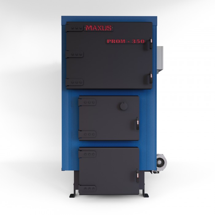 Промисловий твердопаливний котел Maxus PROM 350 – це один з найменших котлів промислової серії "PROM". Даний котел розрахований на опалювальну площу до 3500 квадратних метрів. Котел оснащений великою камерою спалювання палива та вторинною подачею повітря. Коефіцієнт корисної дії такого опалювального приладу складає до 88%, а це в свою чергу дає економію на паливо в порівнянні з іншими опалювальними пристроями цього типу. Водогрійний промисловий котел "Максус" виготовлений з нижнім типом горіння, та має змогу працювати в закритій і відкритій системі.